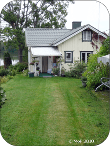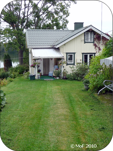 Jag tog risken. I flera dar har jag tittat på gräsmattan framför trappan och konstaterat att det inte skulle skada om den var kortare. Idag fick jag den inspiration som behövdes. Nu kan jag gå upp till bilen utan att bli våt om finskorna. Som bonus blåste löven också i väg en bit.