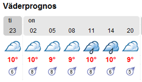 Hela dagen har varit gråmulen med dimma och/eller duggregn, luftfuktigheten har legat på nästan 100 %. Morgondagen blir tydligen likadan. Enda ljuspunkten var temperaturen, +10 grader, bara två grader mindre än igår då solen sken allt vad den orkade. Men det är förstås bara en tidsfråga innan det är dags att byta till vinterdäck.