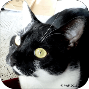 Mia höll mig sällskap, för det mesta inom synhåll. Hon jagade löv som vinden tog tag i eller roade sig med att gömma sig i löv­hö­garna, precis som Snuttan gjorde. Det är den största fördelen med husdjur brukar jag påstå – man har sällskap men behöver inte umgås. 🙂