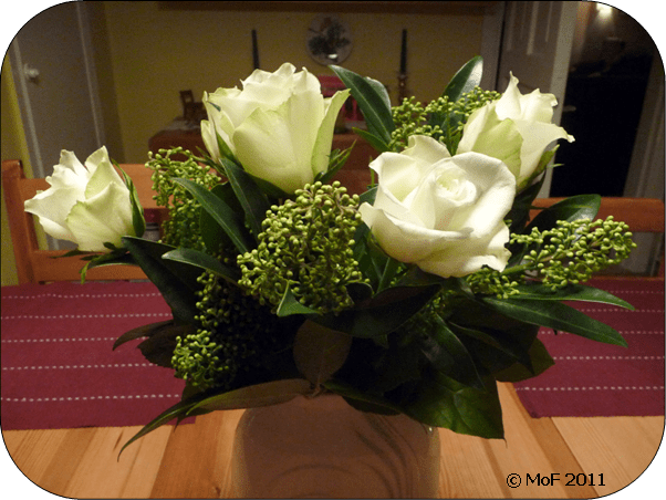 En tjusig blombukett från kursdeltagarna i tisdagsgruppen ”som tack för ditt tålamod”. Gulligt av dom. 🙂