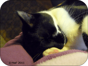 Undrar var ordet ”famnpisko” kommer ifrån? Är det lokal dialekt eller förekommer det också på andra håll i landet? Hur som helst är det en bra beteckning på Mia. Hon ligger gärna i famn både hos mig och våra besökare.