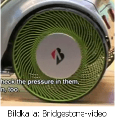 Tänk att aldrig mer behöva drabbas av punktering… Bridgestone har tagit fram ett däck som har elastiska ekrar i stället. Undrar hur det påverkar köregenskaper och väggrepp? Fast Silverpilen lär näppeligen få uppleva den finessen, däcken är avsedda ”för framtidens bilar” står det i artikeln.