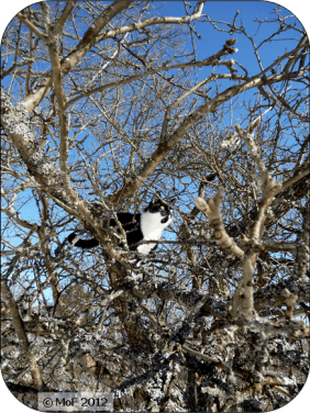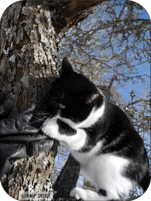 Väl ute i solen tog Mia en klättertur i gamla äppelträdet och spanade på fåglar.