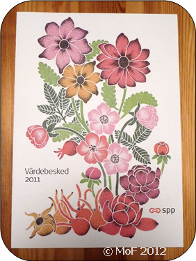 När jag sprättade upp kuvertet och drog ut innehållet höll jag ett blommigt värdebesked i min hand! På medföljande sidor fanns också blommor och små glada ugglor som förklarade pensionssystemet.