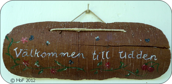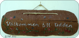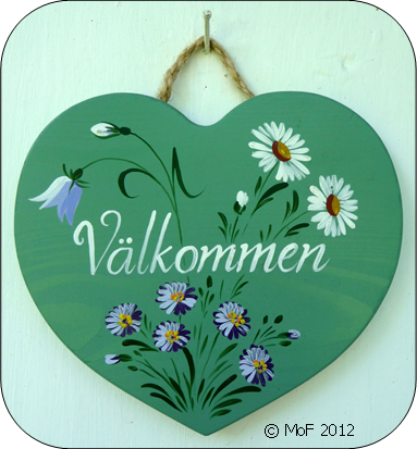 Jag fyndade också en ny Välkommen-skylt till ytterdörren. Den befintliga har jag gjort av bark från en björk som blixten slog ner i för många år sen och herr grannen har dekorerat den, men tyvärr har den spruckit på nytt trots limning i två omgångar. Inte så konstigt efter alla stormar och oväder under årens lopp.