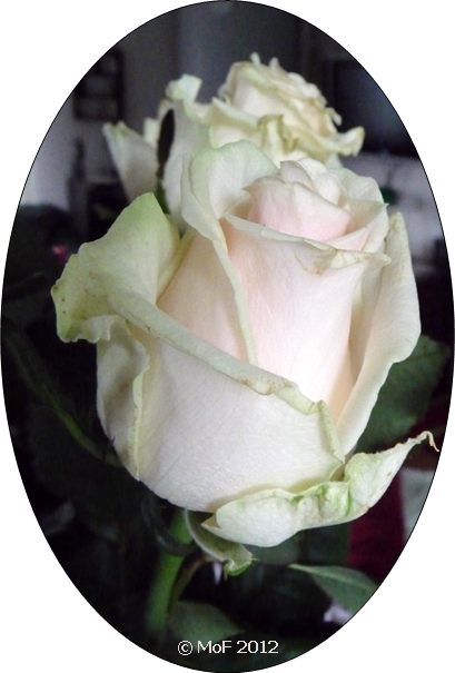 Mamma var först ut att gratulera personligen. Innan dess hade Mia redan hunnit uppvakta mig med en alldeles egen ”present” – en präktig sork. 😀 Dom tjusiga champagne-rosorna fick jag redan i lördags när mamma anlände.