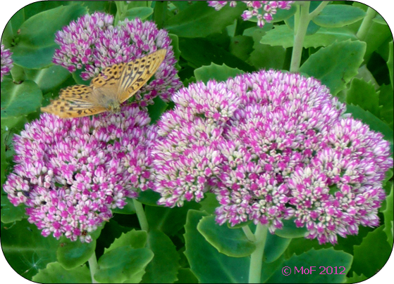 Marken var så varm att jag kunde gå barfota medan jag ansade gräs runt buskar och blommor och solen värmde skönt på ryggen, insekterna surrade och en pärlemorfjäril hedrade mig med ett besök. Det kunde gott ha varit en sommardag om inte solen hade stått så lågt och björklöven var gula.