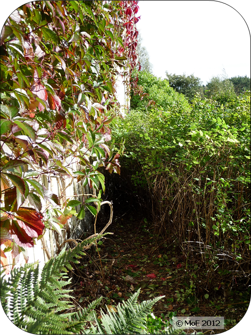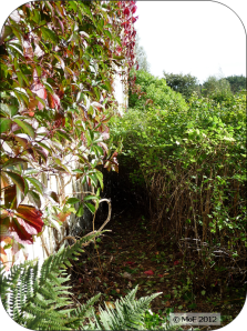Det är minst tre år sen sist. Det märktes minsann. Den ”korridor” som ska finnas mellan husväggen och buskaget var obefintlig. Bara en smal upptrampad stig som avslöjade att Mia brukar gå där rätt ofta.