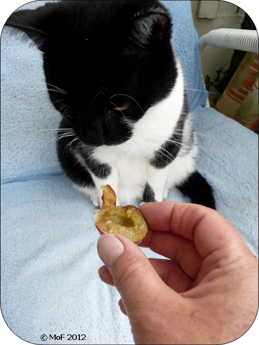 Bondplommon finns det minimalt av i år jämfört med i fjol, men smaken är det inget fel på. Godast är dom färska tycker jag (Mia delar inte min uppfattning). Dom gula plommonen är däremot fler än vanligt – hela fyra stycken mot ett eller två tidigare år.