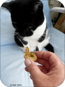 Eftersom hon inte fick följa med in, parkerade hon sig på terrassbordet som står under tak. Vips var Musse på plats för att försvara sitt tillfälliga revir. Födelsedagsbarnets syster och sambo var också på besök med sina två katter. Innan det hände nåt mer drastiskt blev Musse insläppt och höll koll på Mia genom fönstret.