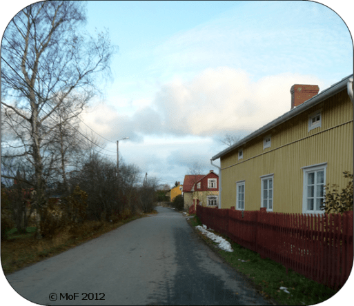 Bortsett från snöfläckarna tedde sig byvägen i Hitis likadan som förra veckan. 🙂