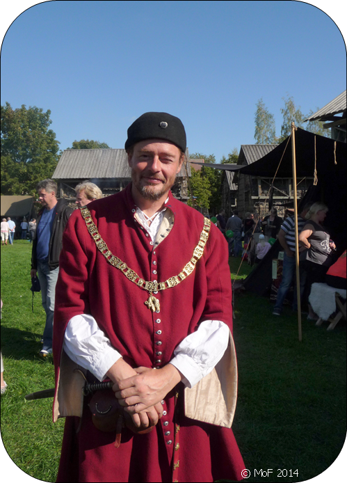 Innan jag lämnade området med mina påsar från skördemarknaden tog jag en kaffepaus hos Holmbergs Fisk tillsammans med Firma Zwerver som deltog med alginfo i de De Grönas lilla stånd. Därefter flyttade jag Silverpilen närmare medeltidsmarknaden som pågick vid de gamla kolugnarna och hittade genast ett villigt bildobjekt i tidsenlig klädsel.