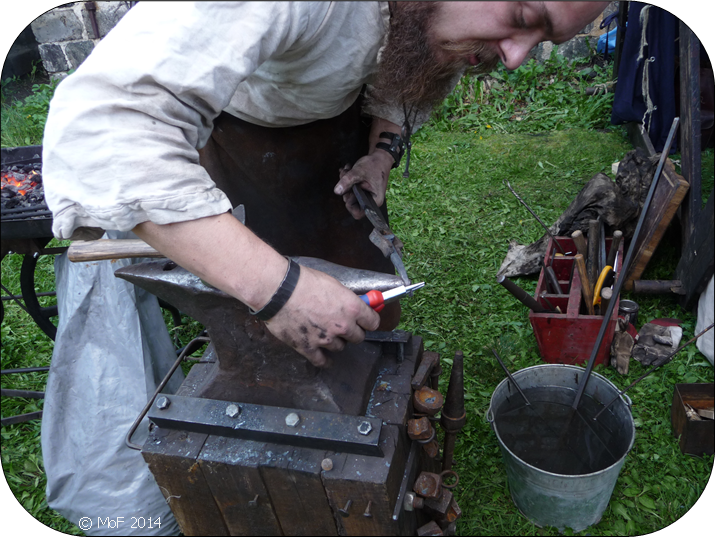 En av järnsmederna gjorde särskilt intryck på mig så jag stannade och tittade på hans produkter. Jag såg inget jag behövde när jag blev tillfrågad men talade om att jag skulle kunna tänka mig en krok för att öppna kakelugnsgallret med men såg inget som passade.