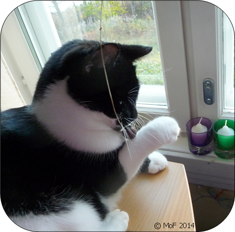 Hon började dagen med att fånga en vattensork, tuggade i sig den och var en kort stund senare i färd med att ta kål på en näbbmus som hon hade burit in i verandan, så det är tydligen andra fyrbenta individer som också trotsar vädret. Tur för henne – och för matte som på så sätt slipper drabbas av hennes överskottsenergi – men otur för jaktbytena förstås. 😥