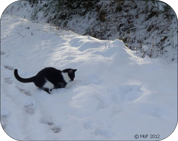 I morse täcktes marken av ett tunt vitt lager igen och på förmiddagen fylldes det på med stora, vita tussar. Stormen hade dragit vidare och solen gjorde en kort stund sitt bästa för att jaga molnen på flykten.