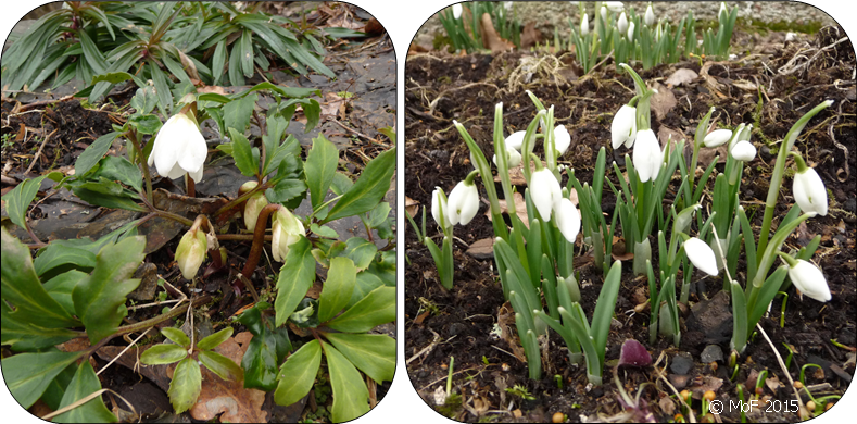 Blommande julros är väl inget vårtecken, men det är snödropparna. Dom har kanske stått i knopp redan ett tag, men inte förrän igår noterade jag de väna, snövita dropparna.