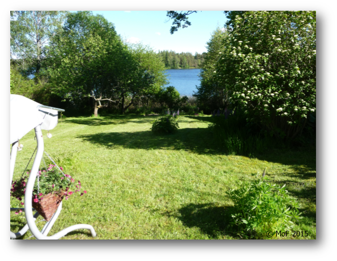 Halvt sommarklädd, dvs iklädd kortbyxor och långärmad tröja, tillbringade jag resten av eftermiddagen i stranden. Växtligheten framför bryggänden var minst sagt frodig och en del växter stack upp mellan bräderna.