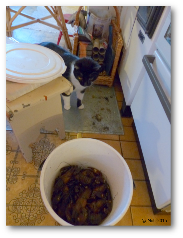 Vid halv nio-tiden i fredags fick jag leverans enligt överenskommelse med vår ”vägmästare” (och vatten­ägare) kvällen innan. Han kom med en halv hink kräftor, eller ”drygt 25” som svar på min fråga hur många jag skulle betala för.