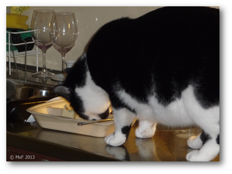 Det förklarar lukten jag kände för någon/några månader sen men som jag inte kunde lokalisera. Vid nåt tillfälle har Mia antingen glömt eller tappat bort sitt jaktbyte för jag är det då inte som har lagt den under mattan! Dom platta resterna väntar nu på den slutliga förgängelsen i spisen.