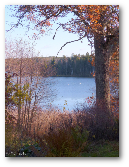 Medan jag planerade vad jag skulle ta itu med först, avnjöt jag en mugg kaffe på pallen vid ”pumphuset” och gottade mig åt eftermiddagssolen. Underhållningen utgjordes av tre svanar långt ute på sjön som uppenbarligen hade sin rengöringsdag av plaskandet att döma.