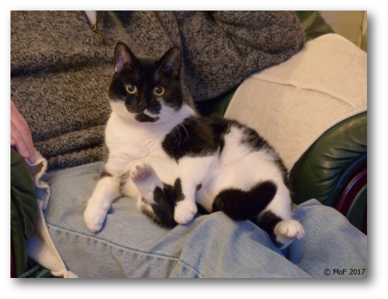 Vädret har blivit betydligt mildare men Mia tilltalas ändå inte av några längre utevistelser. Med jämna mellanrum är hon kelsjuk och parkerar sig omgående i en famn när hon får chansen. I fall hon inte får den uppmärksamhet hon vill ha, går hon och lägger sig.