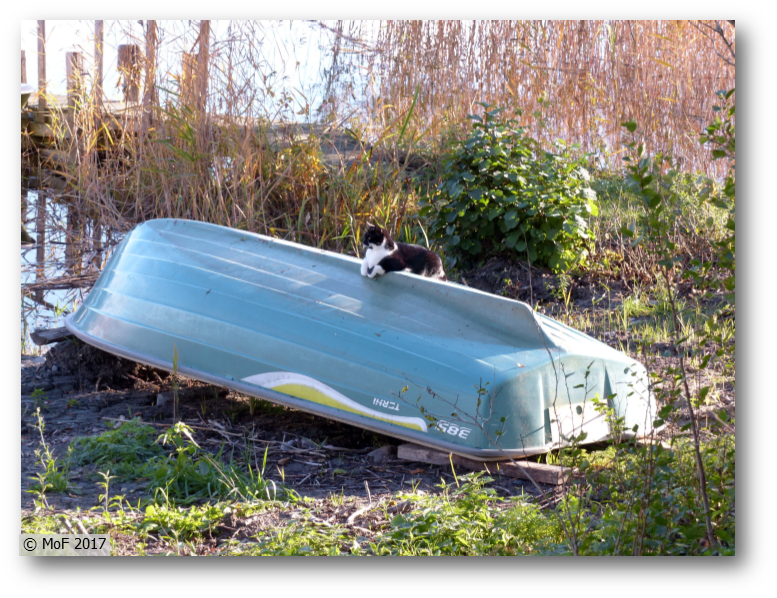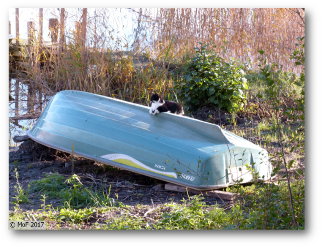 Igår drog Husse upp sommargrannen psykologens båt. Idag befordrade Mia sig själv till båtvakt. 🙂