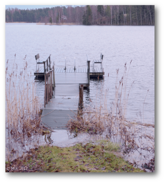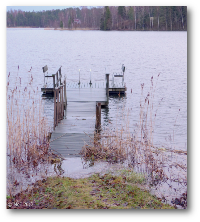 Det är högvatten på Udden. För första gången ligger änden på bryggförlängningen under vatten.