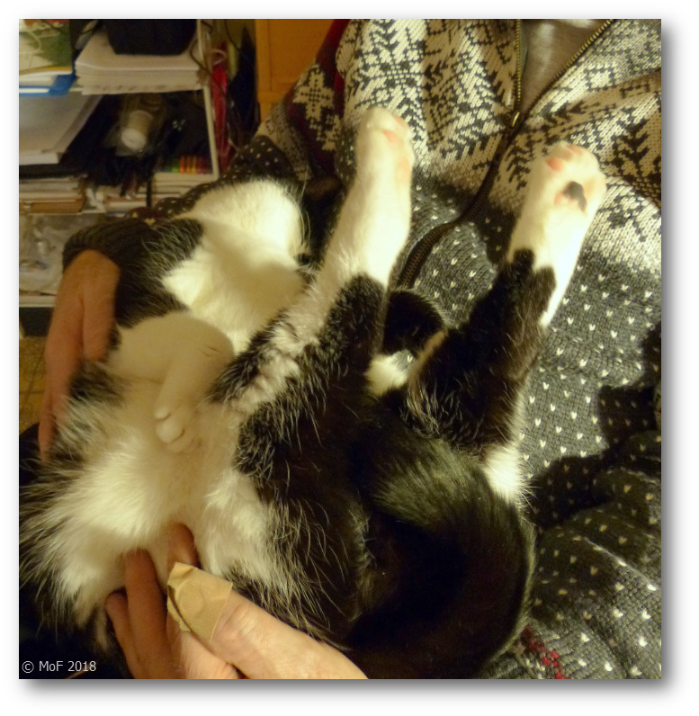 På förmiddagen i lördags låg hon i Husses famn som vanligt då vi kom fram till att man kanske kunde korta av dom? Sagt och gjort, jag hämtade nageltången och skred till verket.