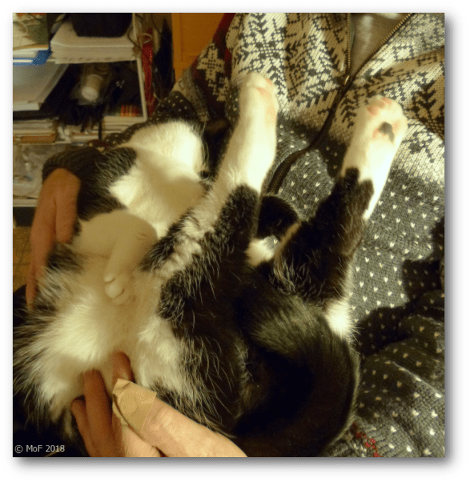 Eftersom Mias utevistelser är synnerligen begränsade, betyder det att hennes klor inte slits som de brukar. Följden är oundviklig – hon fastnar jämt med klorna överallt.