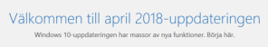 Idag var det då min tur att få den senaste stora uppdateringen av Windows 10, version 1803. Det var lite pirrigt med tanke på vad jag läst om de användarproblem som uppstått, men uppdateringen på både den bärbara datorn och den stationära gick som smort.