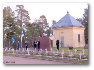 Efter gudstjänsten företogs självständighetsdagens blomnerläggning vid hjältegravarna. Den hölls stående utomhus så där var det ingen risk för att somna. Det var ingen långdragen ceremoni, bara en krans och två buketter lades ner vid de stupades minnesmonument.