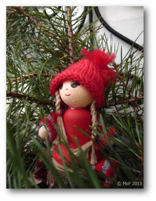 På tisdagen bar jag ner lådan med julpynt från vinden. Mest för att kolla om det fanns några julljusstakar och ljus i den. Det gjorde det nu inte, så jag lät mig nöja med några tomtar i stället som jag placerade ut på olika ställen i huset.