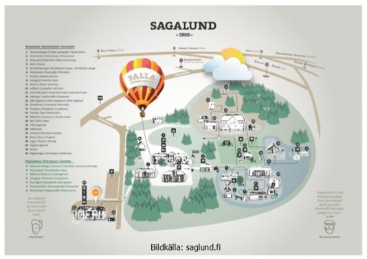 Vi har ett flertal muséer på ön, alla med lite olika inriktning. Och så har vi Sagalund, vårt största och i mitt tycke mest sevärda.Igår företog en liten grupp medlemmar i hembygdsföreningen en utflykt dit. Vi började med en god lunch på museéts café, Café Adéle. Värdinnan tog emot oss med ett leende och färdigdukat långbord. Förutom maten ingick dessert och kaffe i det mycket humana priset.