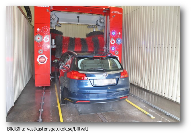 Dom färgglada lamporna lyste och blinkade medan tvätt och vaxning pågick. Borstarna var rena och av ett helt annat material och utseende än i Östersund. Till och med nummerplåten blev ren.