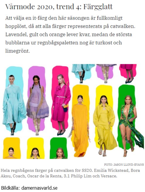 Idag förirrade jag mig in på Damernas Världs trendrapport från modemässan i Köpenhamn. Vad jag kan minnas har det aldrig hänt tidigare. Aktuellt mode och trender är inte min grej. Mina gamla paltor får duga, oavsett om dom är moderna eller inte.