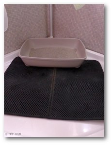Jag blev nästan gråtfärdig när jag såg eländet… Flera kilo kattsand låg utspridd i högar på olika delar av golvet. I och under duschkaret, på golvet och på mattorna.