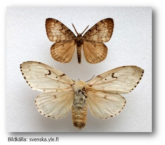 I dag lyckades ”framkallningen” bättre. Om jag har artbestämt korrekt, är det här larven av en lövskogsnunna. En sån där som knaprar på lövträd. På bilden nedan är den övre en hane, den undre en hona.