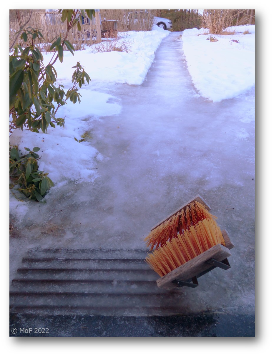 I skogen var det som vanligt mindre halt än annanstans. På tomtens alla stigar råder blixthalka, så om man ska besöka Udden ska man ha olycksfallsförsäkringen i skick. Gärna också livförsäkringen. ☹