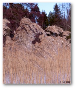 Jag stannade till vid vasskanten och beundrade vassvipporna som böjde sig i vinden innan jag förevigade dom på bild.  Sen fick jag en idé. Några stjälkar skulle passa bra i vasen med resterna av nyårsbuketten, så jag slet av en liten bukett.