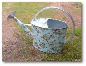 Det nya varuhuset är våldsamt stort med mina mått mätt, så det var inte så lätt att hitta det man skulle ha. Under skylten Säsongsvaror hittade jag en blommig sprutkanna i metall som jag inte kunde motstå trots priset. Visst är den fin?