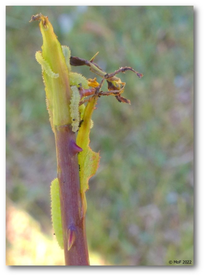 Nog för att jag är en vän av insekter, men dom här gillar jag inte! Rosorna planterades på 1970-talet, men några såna här kryp har jag aldrig sett till tidigare. Alla knoppar är uppätna och bladen är också delvis avtuggade. 😥