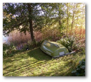 I dag har Husse och jag hjälpts åt att förbereda vintern. Båten är uppdragen, vattentunnan tömd, vattenslangen upphängd i boden, forsythian har fått skyddsnät och hammocken har fått sitt vinterskydd.