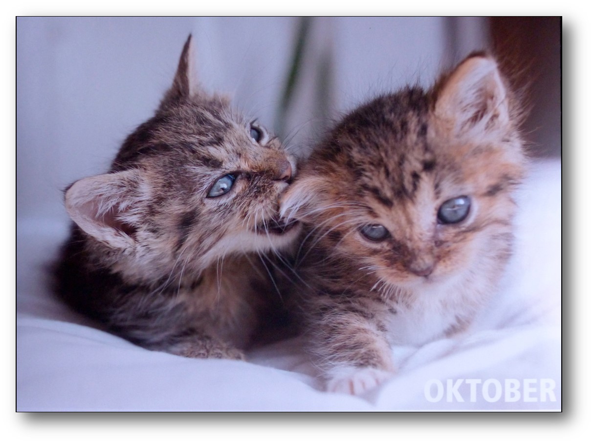 Den här månaden har väggkalendern visat två söta kissemissar. Snart dags för vintertid och en ny kalenderbild.