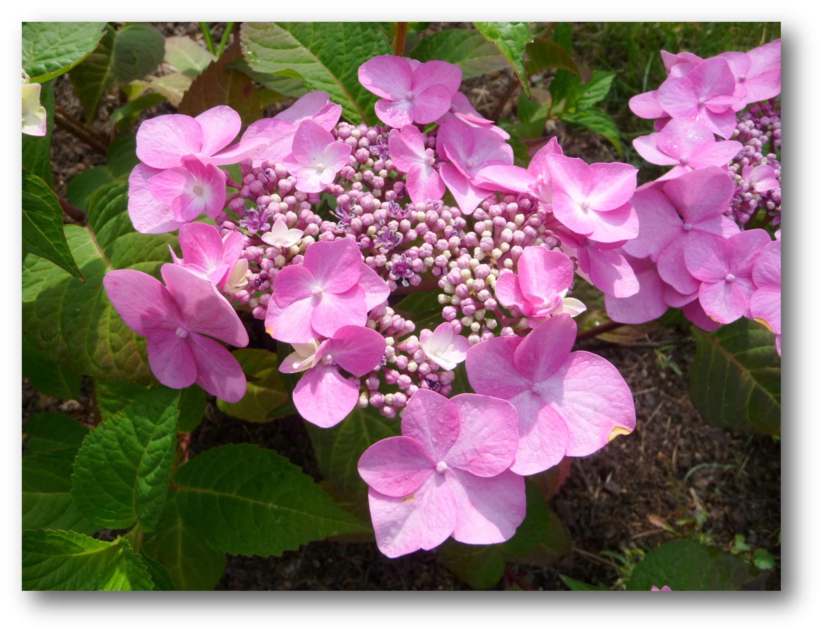 2010 köpte jag och planterade en hortensia. Den blommade med rosa blommor i fyra år, sen bidde det inga fler till min stora sorg. Troligen beroende på torka och/eller bristande skötsel.