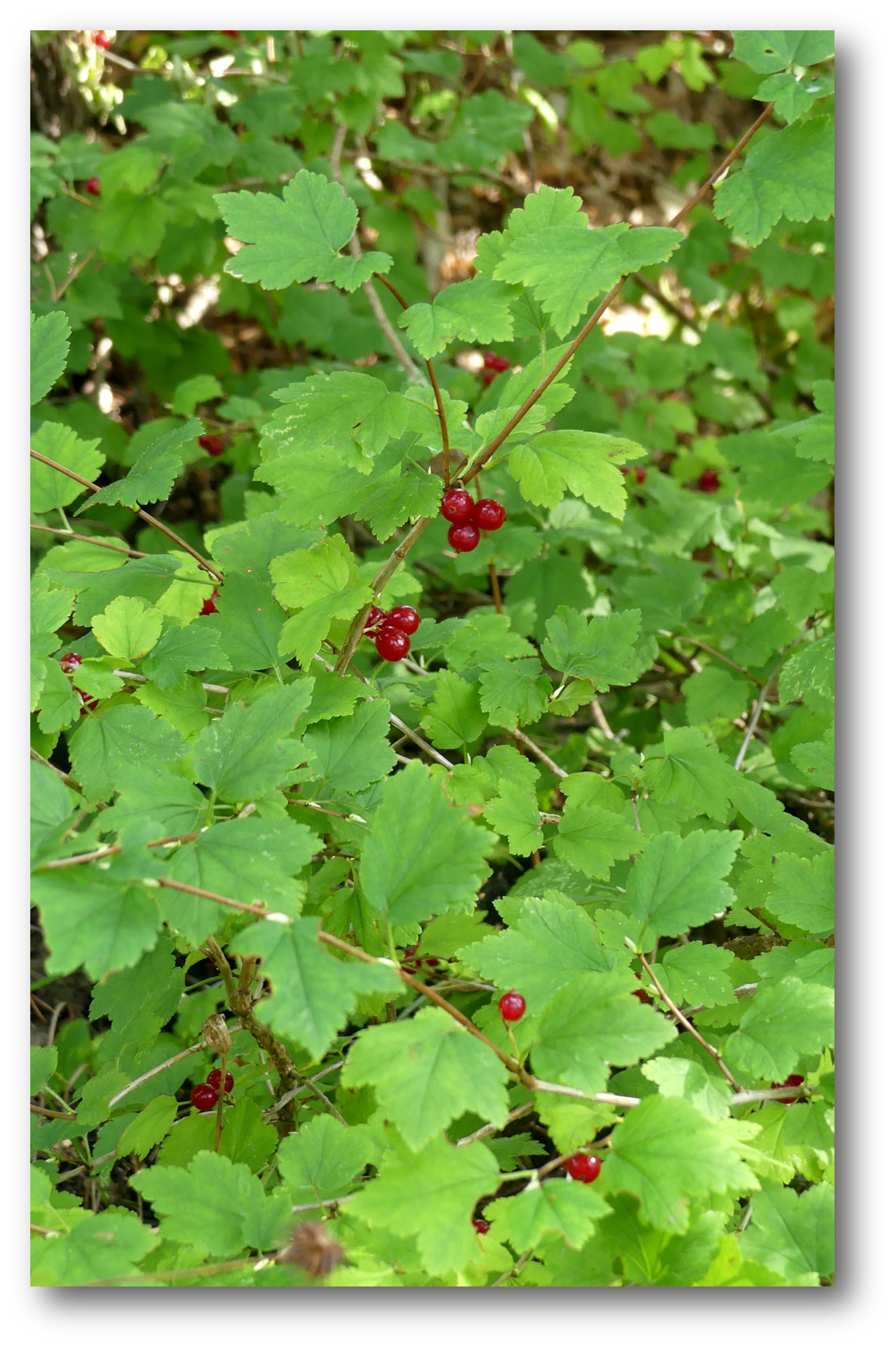 I slänten vid Uddens stora backe växer ett slags buskar som jag inte vet namnet på, men högst troligen är det Måbär (Ribes alpinum). Just nu har dom röda bär, som tydligen är ätliga men med fadd smak enligt dom som vet.