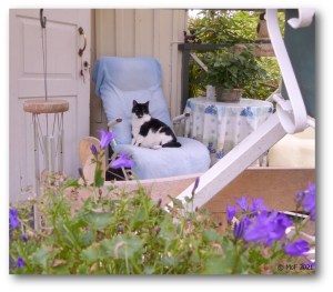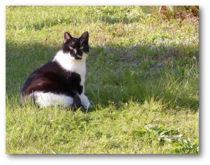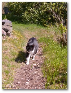 Mia övervakade arbetet. Hon la sig på behörigt avstånd och njöt av solvärmen medan jag kapade och slängde kvistar i högar.