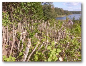 I dag var det min tur att ta i tu med syrenerna vid husgaveln. Vid det här laget hade dom vuxit sig så höga att dom delvis skymde utsikten över sjön.