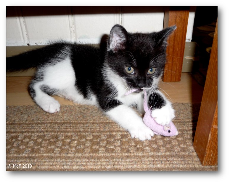 Jag hade egentligen inte tänkt mig nån ny katt efter Snuttan än på ett tag, men hade inte hjärta att säga nej – alternativet var avlivning. Vi hade redan umgåtts en hel del eftersom jag var vikarierande kattmamma då mamma var tillfälligt bortrest.