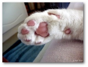 Igår morse kom Mia in i rasande fart och beklagade sig högljutt. Jag trodde hon ogillade det begyn­nande regnet, men det var värre än så. På eftermiddagen upptäckte vi att hon haltade svårt och höll upp ena framtassen när hon satt.