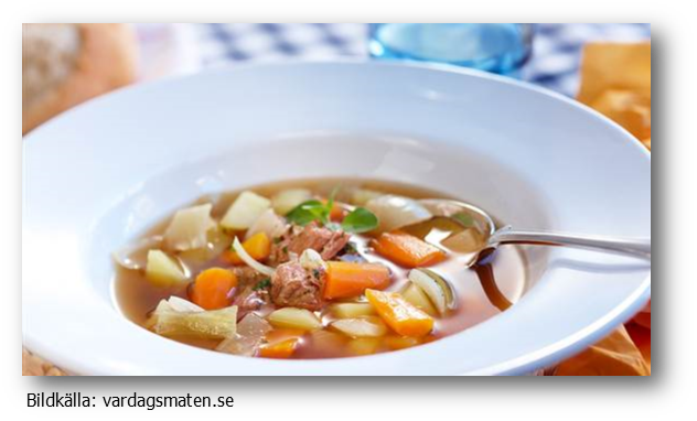 Undrar när jag kokade köttsoppa senast? I fredags blev det hur som helst av. Vi tyckte trädfällaren gott kunde få lunch på Udden så han slapp åka hem. Bortsett från att potatisen inte var helt mjuk gick den ju an.